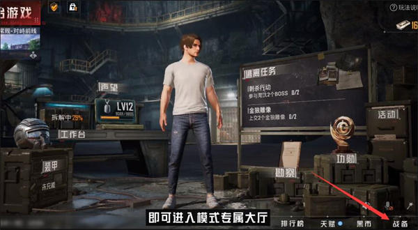 1、進入地鐵逃生游戲模式專屬大廳后,在右下角選擇戰(zhàn)備,首先需要準(zhǔn)備好出發(fā)時的物資裝備;