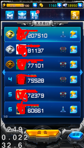 但兩種模式都是相輔相成的,裝備級別高了打無盡分高,無盡中會產出裝備,來升級戰(zhàn)機。反正倆沒事都玩玩就對了。