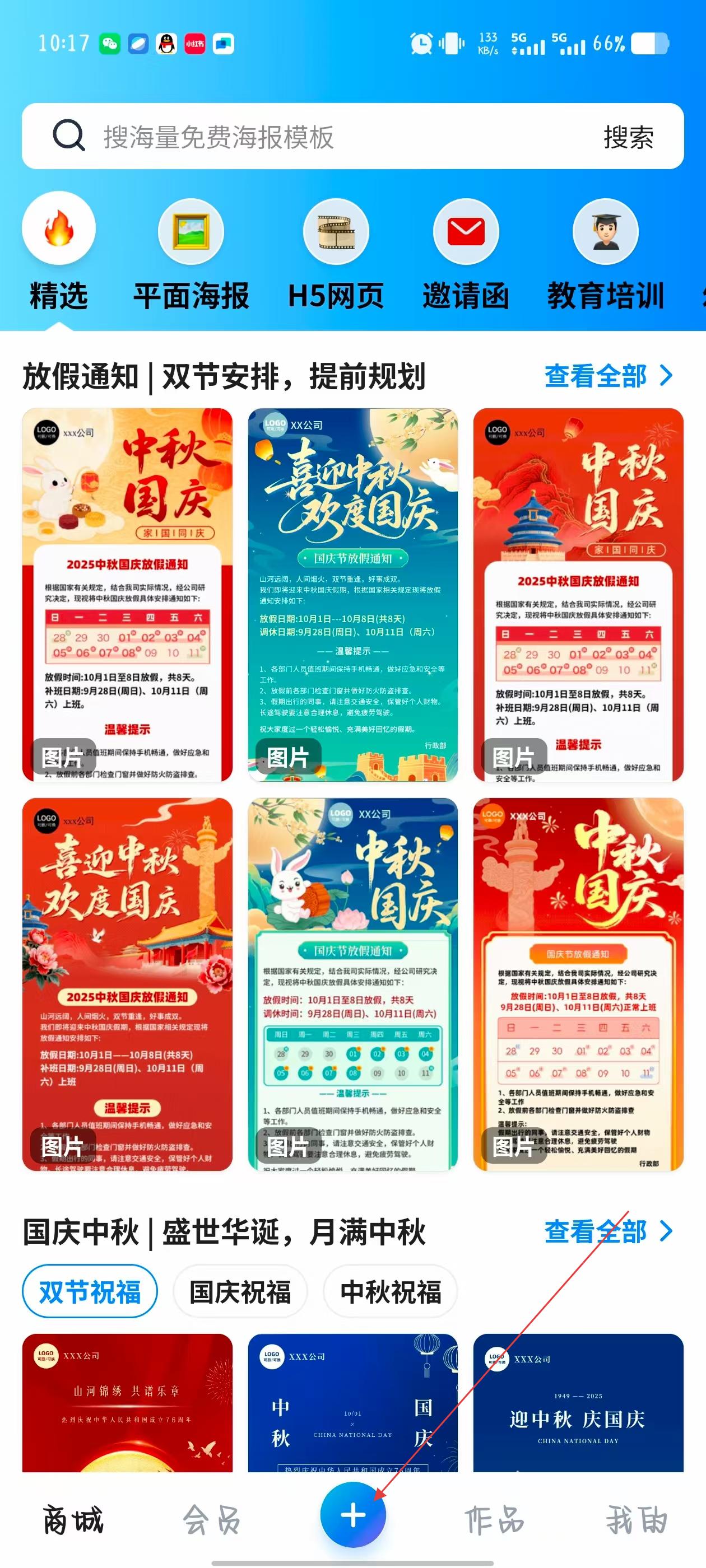 1、打開MAKA應(yīng)用,點(diǎn)擊首頁底部中間的+號(hào),進(jìn)入創(chuàng)建作品頁面。