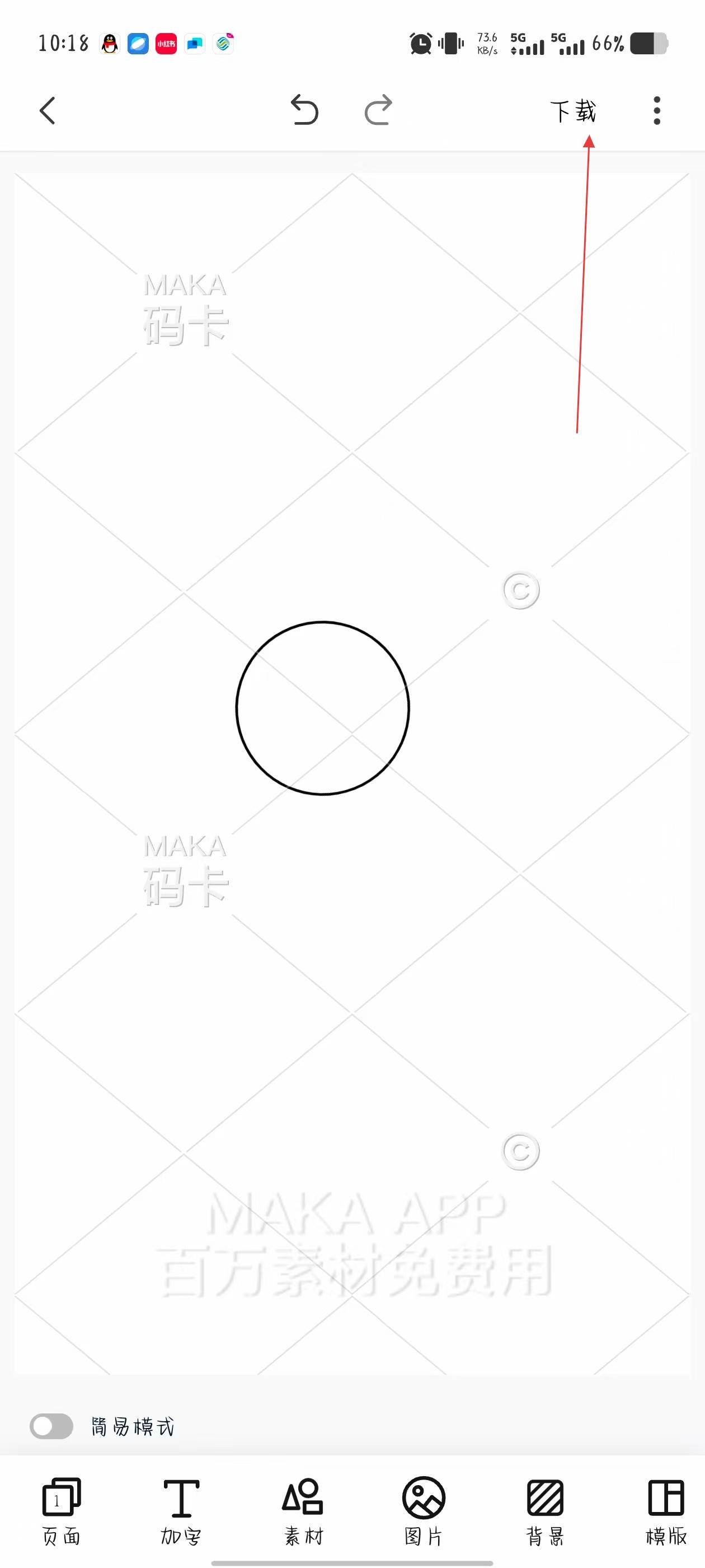 4、作品設(shè)計(jì)好后,點(diǎn)擊頁面右上角的下載按鈕,將創(chuàng)建的作品保存到設(shè)備中。