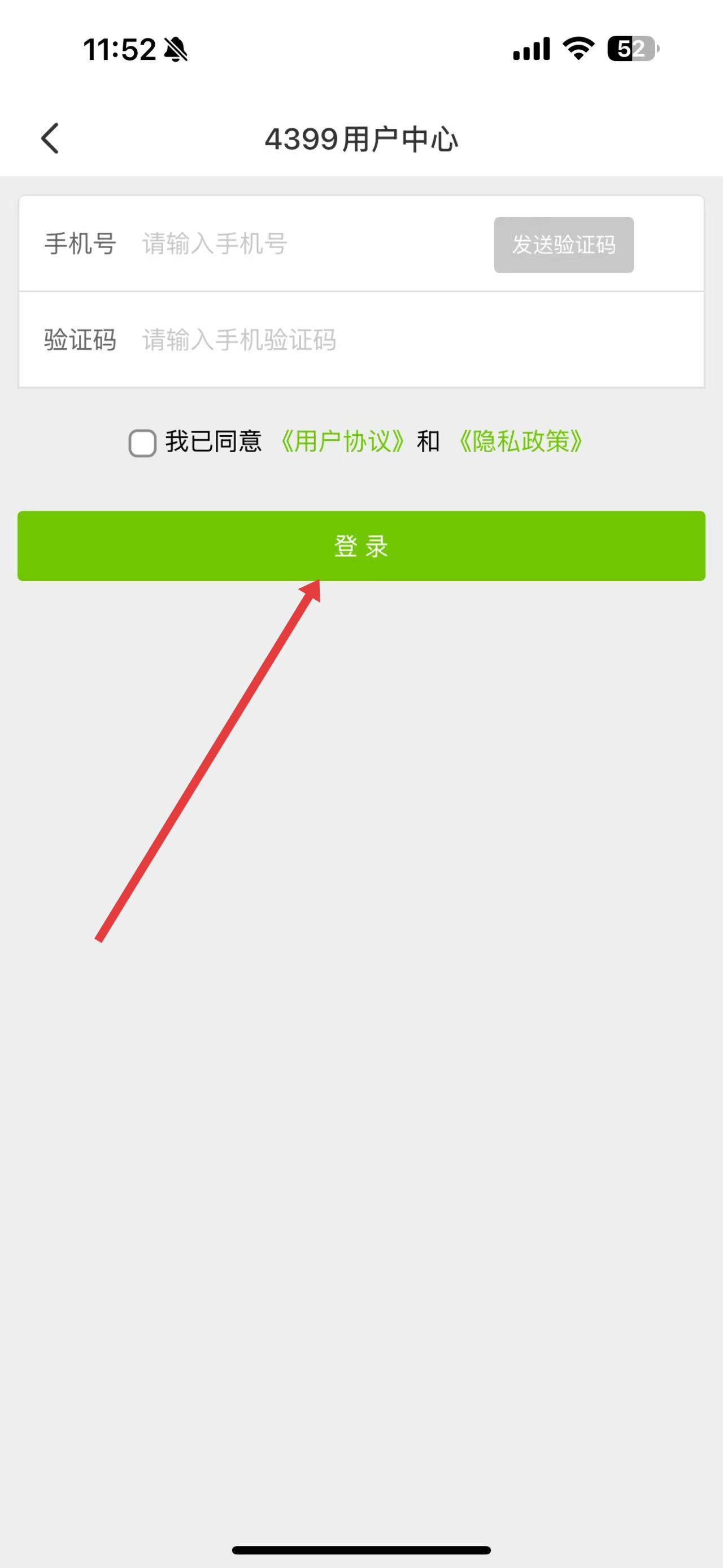 3、在4399用戶中心界面,輸入手機(jī)號(hào),點(diǎn)擊發(fā)送驗(yàn)證碼,收到驗(yàn)證碼后填入,勾選同意協(xié)議后,點(diǎn)擊登錄完成注冊(cè)。