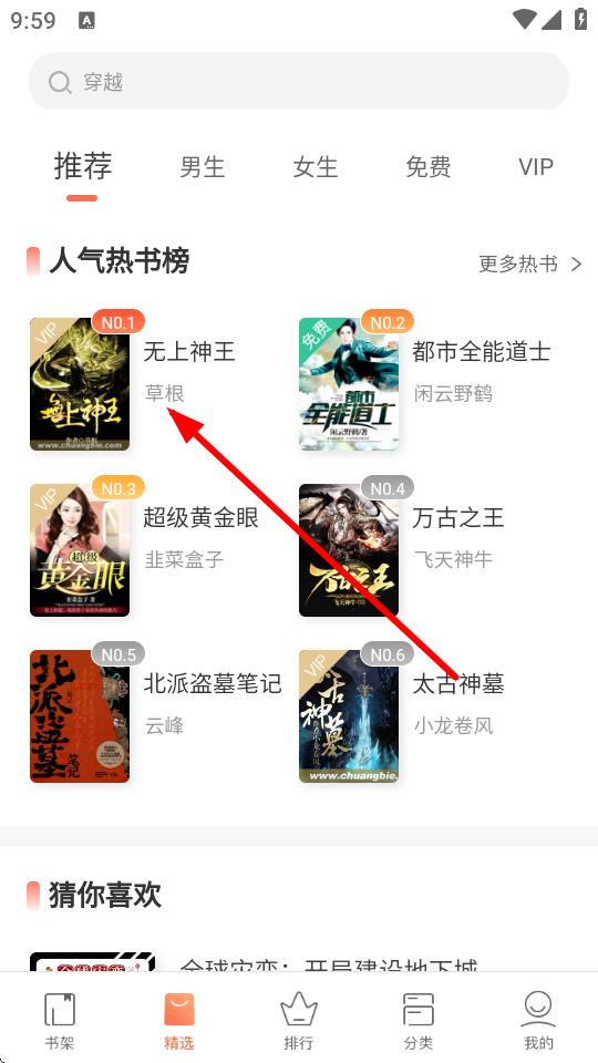 2、在精選的人氣熱書榜里,選擇想收聽的小說,比如無上神王。