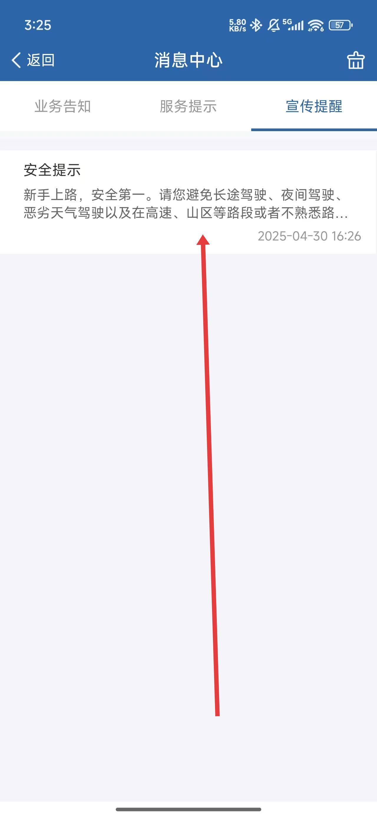 2、在進(jìn)入到消息中心頁面,點(diǎn)擊宣傳提醒模塊下的安全提示信息,查看完整信息。