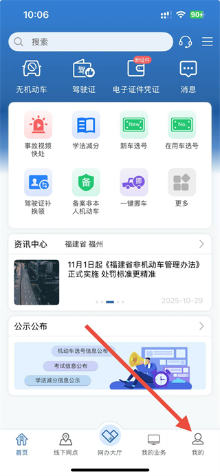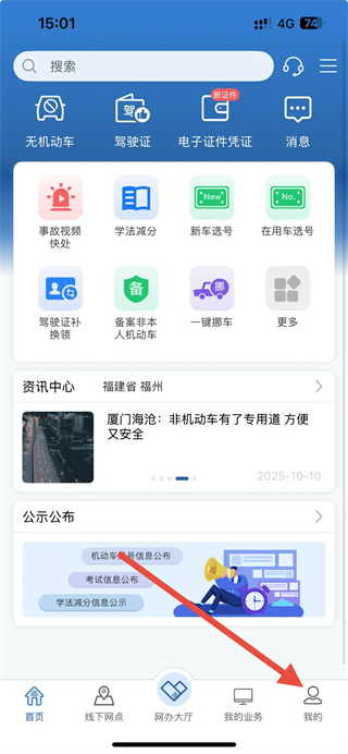 1、在交管12123app首頁,點(diǎn)擊右下角我的按鈕,進(jìn)入個(gè)人頁面。