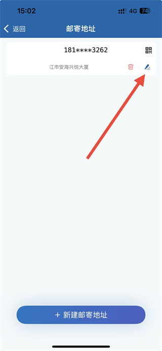3、在郵寄地址頁面點(diǎn)擊編輯圖標(biāo),進(jìn)入編輯地址頁面。