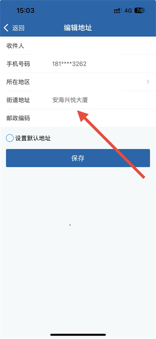 4、在編輯地址頁面修改信息后點(diǎn)擊保存按鈕,即可完成郵寄地址修改操作。