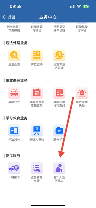 2、在業(yè)務(wù)中心的便民服務(wù)板塊,點(diǎn)擊老年人業(yè)務(wù)代辦選項(xiàng)。