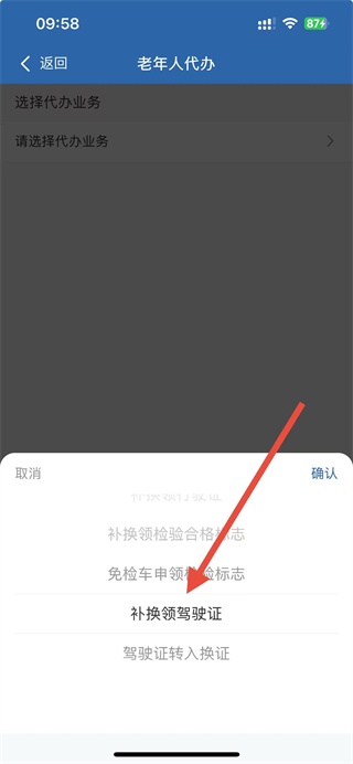 4、在業(yè)務(wù)列表中選擇補(bǔ)換領(lǐng)駕駛證,然后按照提示完成后續(xù)操作即可。