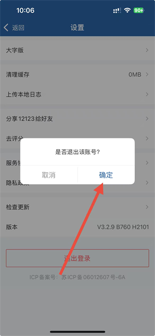 4、在彈出的確認(rèn)框中,點(diǎn)擊確定即可完成退出登錄操作。