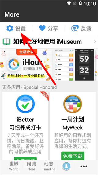 1、在imuseum應(yīng)用,點(diǎn)擊設(shè)置選項(xiàng),進(jìn)入設(shè)置界面。