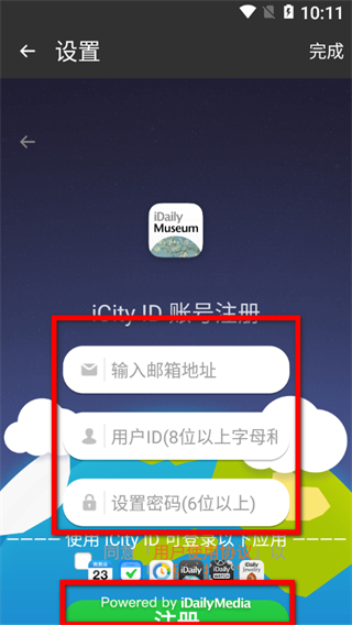 4、在注冊(cè)信息填寫(xiě)界面,輸入信息后點(diǎn)擊注冊(cè),即可完成imuseum注冊(cè)。