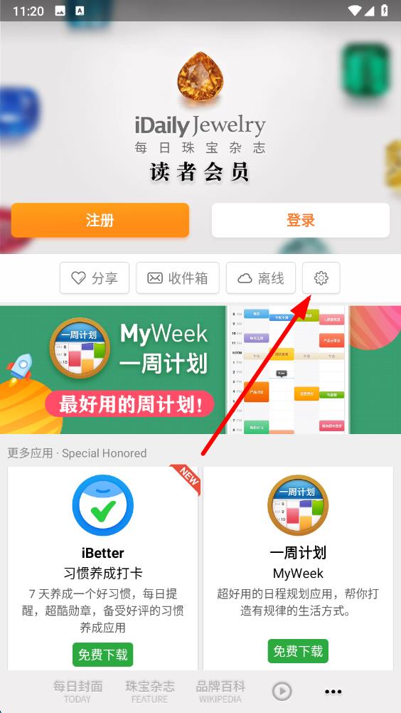 1、打開每日珠寶雜志app,點擊頁面右下角的圖標按鈕。
