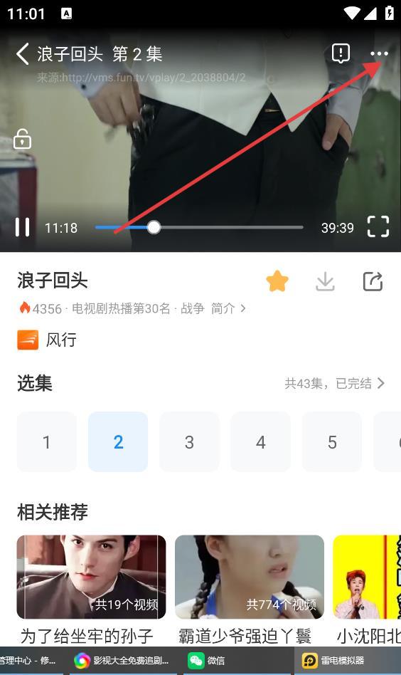 2、點(diǎn)擊播放界面右上角的...圖標(biāo),彈出更多功能菜單。