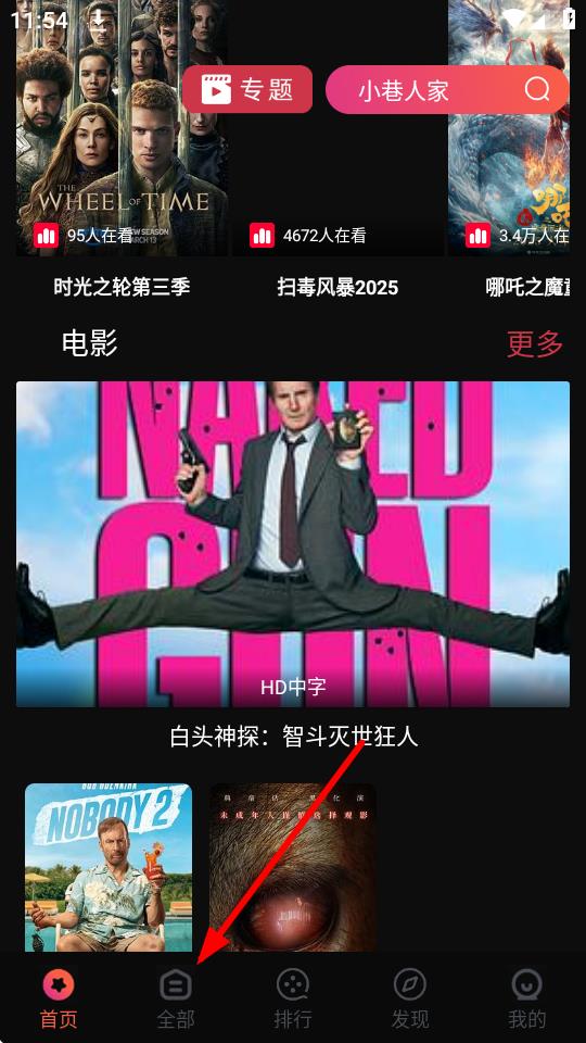 1、打開鯊魚影視應用,點擊底部導航欄中的全部選項進入影視分類頁面。