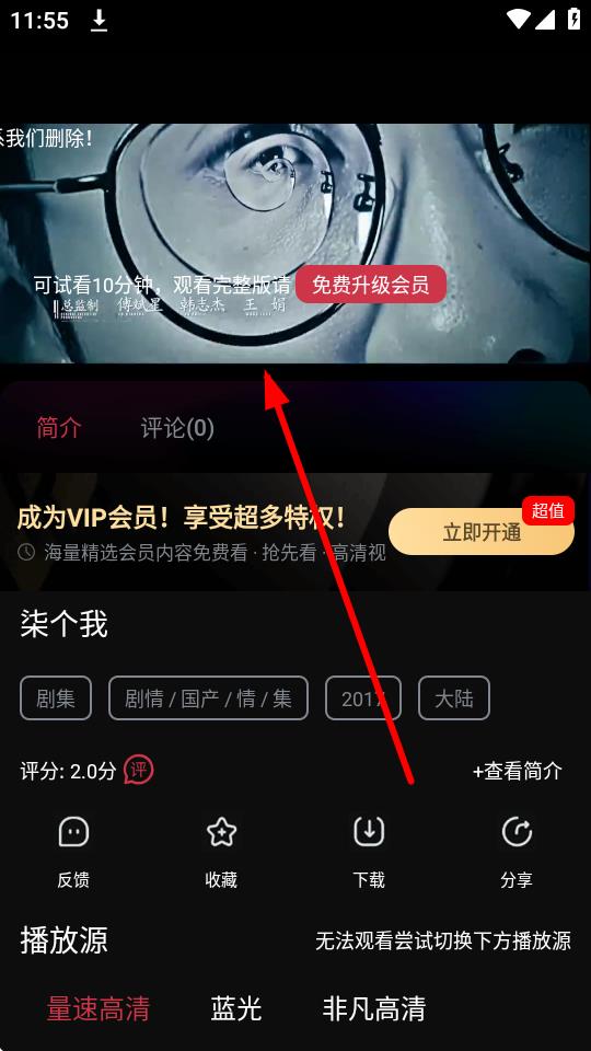 4、進入影片詳情頁,點擊影片選清晰度,即可播放觀看影視內容。