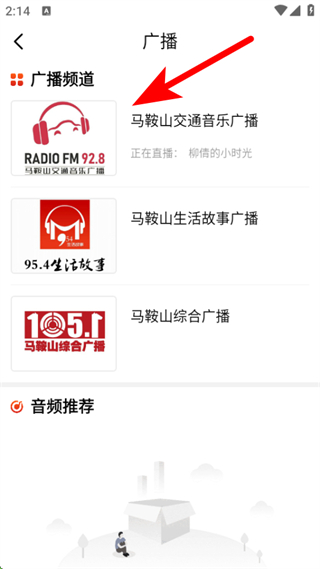 3、在廣播的頁(yè)面,需要選擇想要收聽的廣播頻道,點(diǎn)擊進(jìn)入。