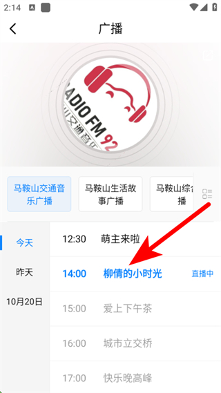 4、進(jìn)入廣播頻道后,可查看節(jié)目單,選擇正在直播的節(jié)目進(jìn)行收聽。