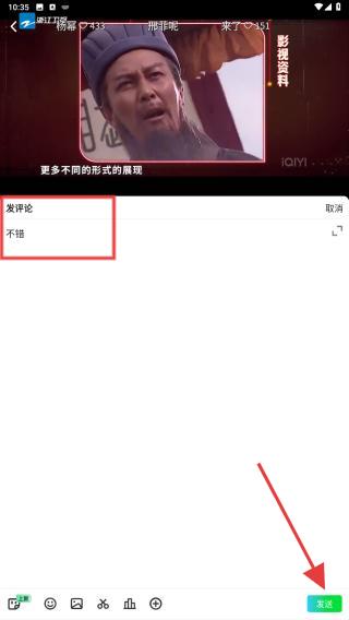 2、點(diǎn)擊后會彈出發(fā)評論的內(nèi)容框,用戶可在此區(qū)域進(jìn)行輸入個人觀點(diǎn),輸入后點(diǎn)擊發(fā)送即可。