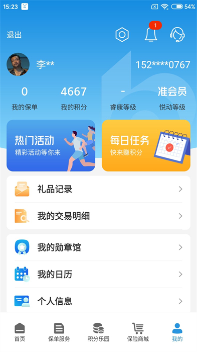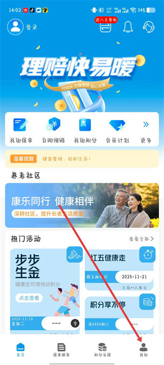 1、打開交銀人壽APP,點擊底部我的選項,進入個人頁面。