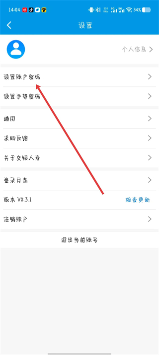 3、在設(shè)置頁面點擊設(shè)置賬戶密碼選項,進入設(shè)置密碼頁面。