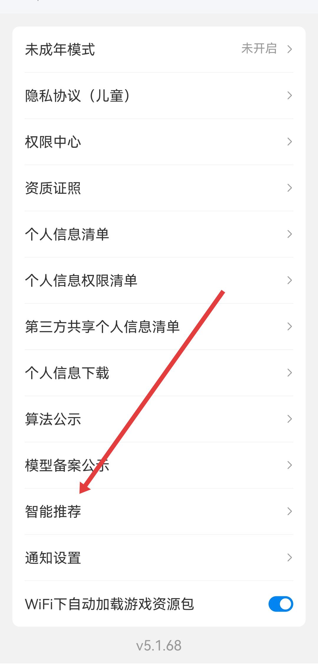 2、在更多設(shè)置頁面中,點(diǎn)擊智能推薦的選項(xiàng),進(jìn)入智能推薦設(shè)置的頁面。