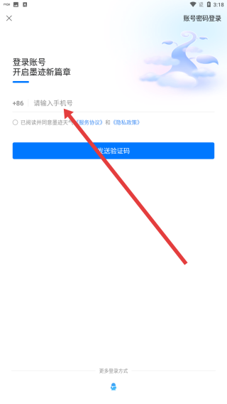 3、在跳轉(zhuǎn)到登錄頁(yè)面后,點(diǎn)擊輸入手機(jī)號(hào)以發(fā)送驗(yàn)證碼登錄賬號(hào)。