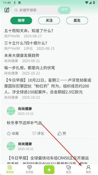 1、打開(kāi)尚尚健康A(chǔ)PP,點(diǎn)擊導(dǎo)航欄中的我的。