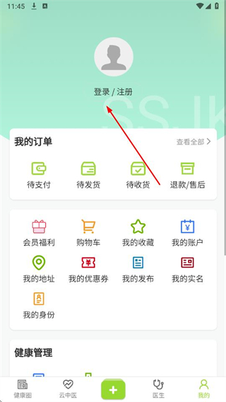 2、在我的頁(yè)面中,點(diǎn)擊登錄/注冊(cè)。