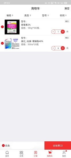 在這里,用戶可以通過編碼、類別、型號(hào)和加購時(shí)間來對(duì)購物車中的產(chǎn)品進(jìn)行排序;