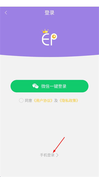 3、在登錄頁面點擊手機登錄,進入手機登錄信息填寫頁面。