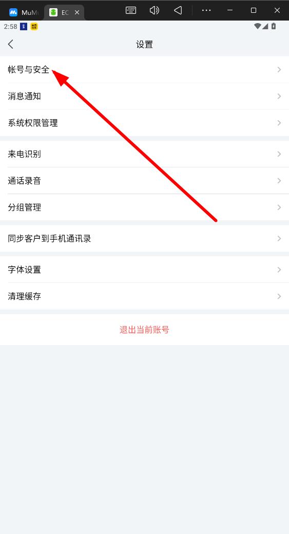 3、在設(shè)置頁面里,點(diǎn)擊帳號(hào)與安全選項(xiàng)。