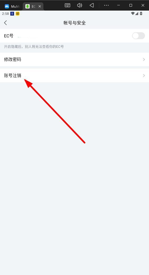 4、進(jìn)入帳號(hào)與安全頁面后,點(diǎn)擊賬號(hào)注銷選項(xiàng),按照后續(xù)提示完成注銷操作。