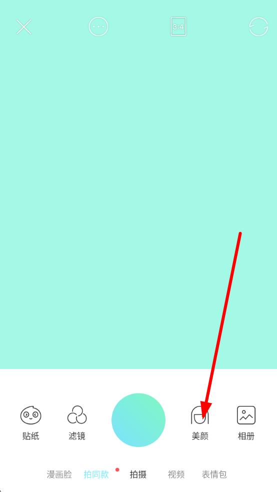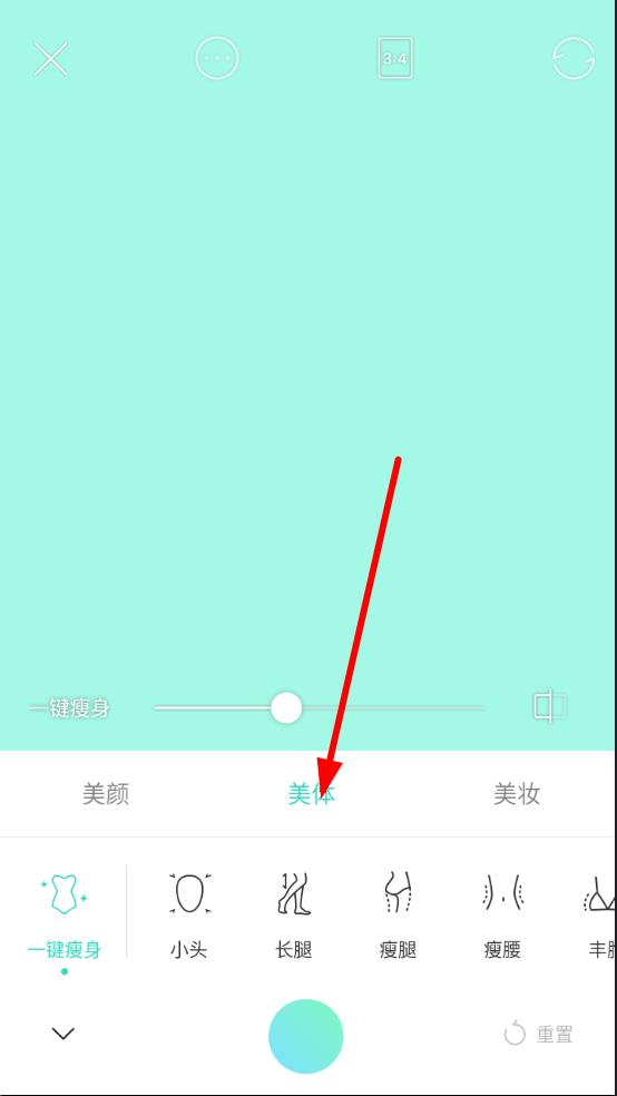 1、進入拍攝界面,點擊底部美顏按鈕,展開美顏功能欄,可先選美體,用一鍵瘦身、小頭等調(diào)整身材比例,打造理想身形。