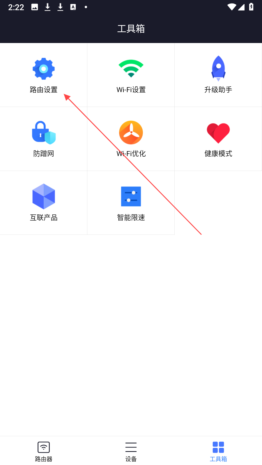 1、進(jìn)入小米WiFi工具箱,點(diǎn)擊路由設(shè)置,可進(jìn)行網(wǎng)絡(luò)參數(shù)調(diào)整、重啟路由器、管理存儲(chǔ)及系統(tǒng)配置等操作,按需選擇對(duì)應(yīng)選項(xiàng)完成設(shè)置修改,讓路由器適配使用需求。