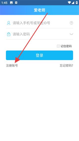 1、打開愛老師學(xué)生端app,點(diǎn)擊下方的注冊賬號(hào)選項(xiàng)。