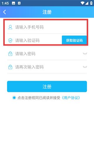 3、在注冊頁,輸入需要注冊的手機(jī)號(hào)碼和短信驗(yàn)證碼。