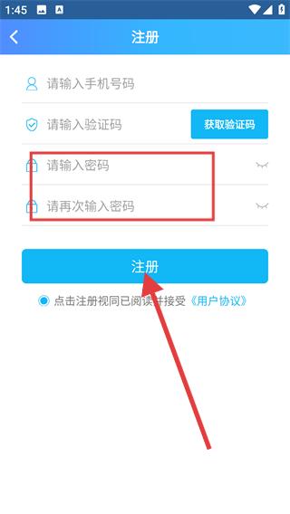 4、設(shè)置密碼并確認(rèn),點(diǎn)擊注冊按鈕,即可完成賬號(hào)注冊。