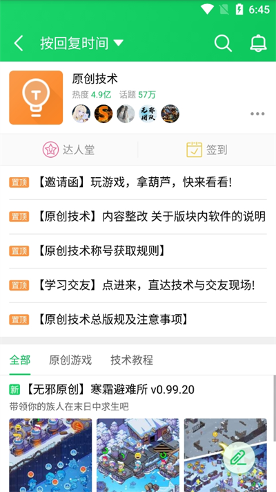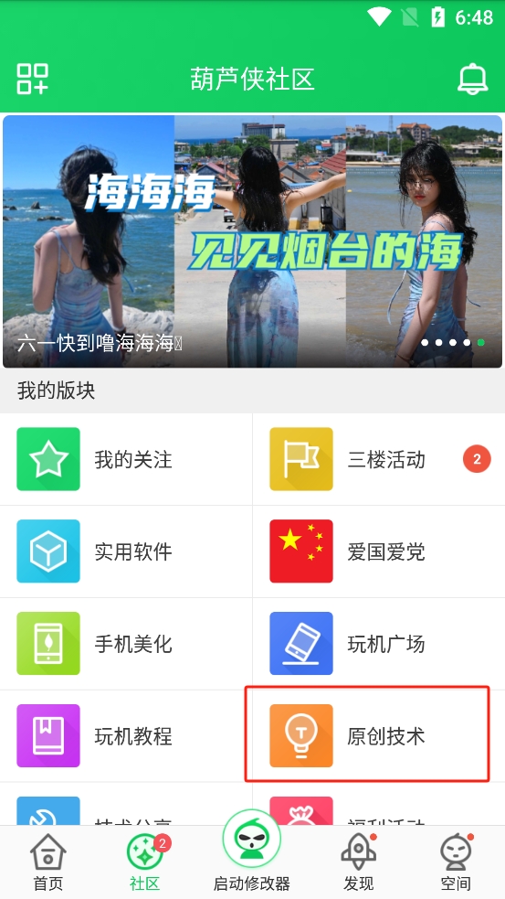 3、進(jìn)入葫蘆俠社區(qū)中將會(huì)看到各種不同主題的社區(qū)版塊,我們以原創(chuàng)技術(shù)為例;