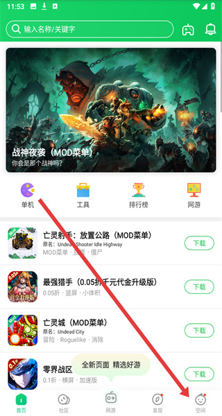 1、可以在葫蘆俠首頁(yè)中,點(diǎn)擊下方空間按鈕,進(jìn)入我的空間。