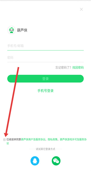 3、在進(jìn)行登錄操作前,需先點(diǎn)擊勾選已閱讀并同意按鈕后,進(jìn)行登錄操作。