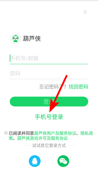 3、在登錄界面,點(diǎn)擊手機(jī)號(hào)登錄選項(xiàng),進(jìn)入手機(jī)號(hào)填寫頁(yè)面。