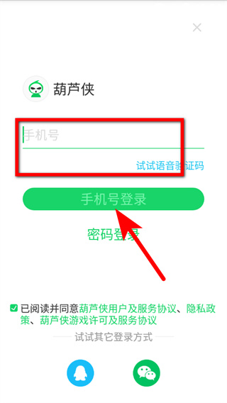 4、在勾選好同意按鈕時(shí),可點(diǎn)擊上方輸入框,依次輸入手機(jī)號(hào)和密碼信息后即可完成登錄操作。