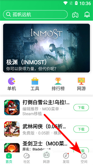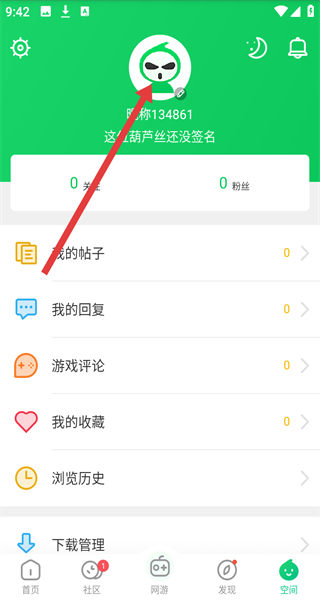 1、在葫蘆俠首頁(yè),點(diǎn)擊右下角空間選項(xiàng),進(jìn)入個(gè)人空間頁(yè)面。