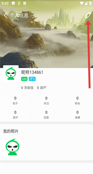 3、在進(jìn)入到個(gè)人信息頁(yè)面后,點(diǎn)擊右上角圖標(biāo),可以進(jìn)行編輯資料。