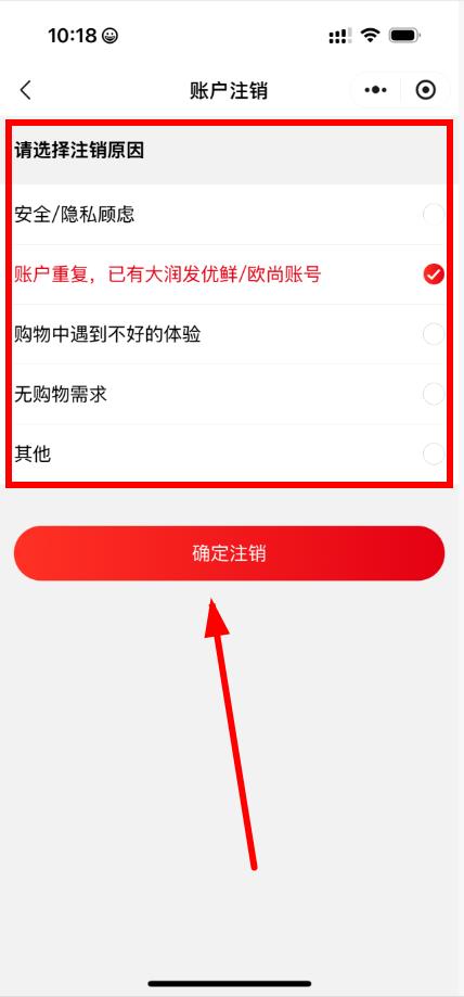 4、在賬戶注銷頁面選擇注銷原因,然后點擊確定注銷,按照后續(xù)提示完成賬號注銷操作。