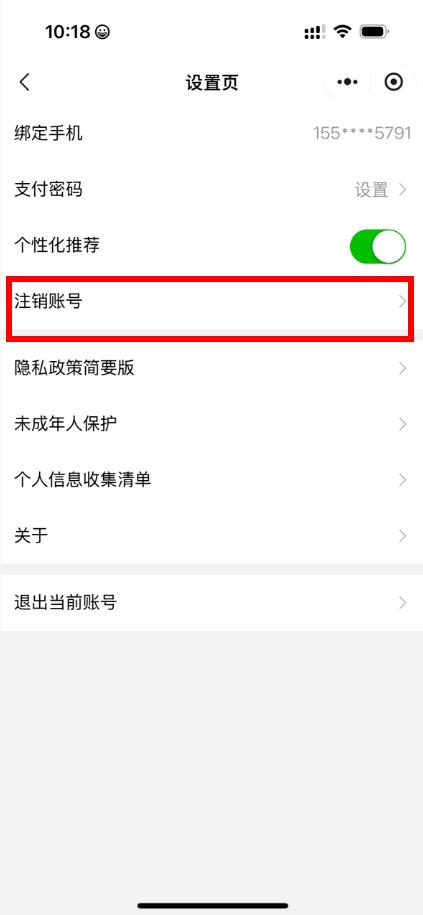 3、在設(shè)置頁中找到注銷賬號選項,點擊進入。