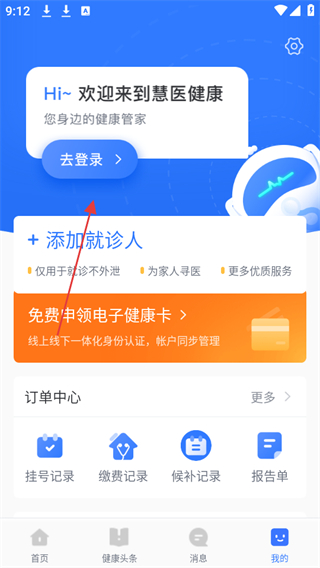 1、打開慧醫(yī)app,點(diǎn)擊底部導(dǎo)航欄中的我的選項(xiàng)。