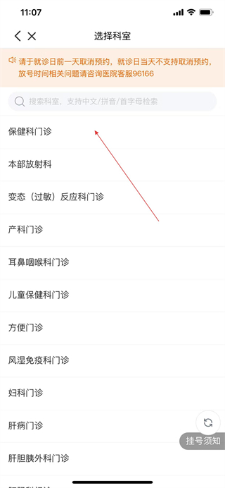 3、在選擇科室頁(yè)面,選擇相應(yīng)的科室,進(jìn)入醫(yī)生列表頁(yè)面。