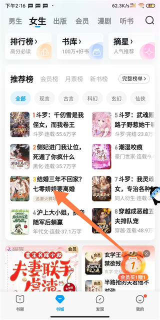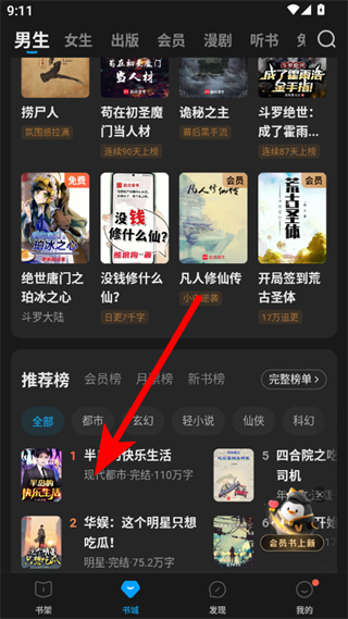 1、在QQ閱讀書城頁(yè)面,點(diǎn)擊任意書籍,進(jìn)入書籍詳情頁(yè)面。