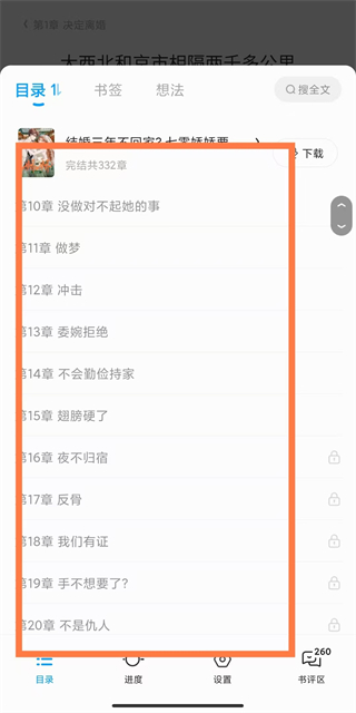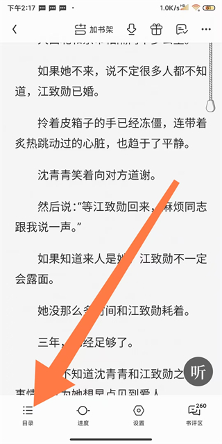 3、在閱讀界面,點(diǎn)擊左下角目錄選項(xiàng),進(jìn)入目錄界面。